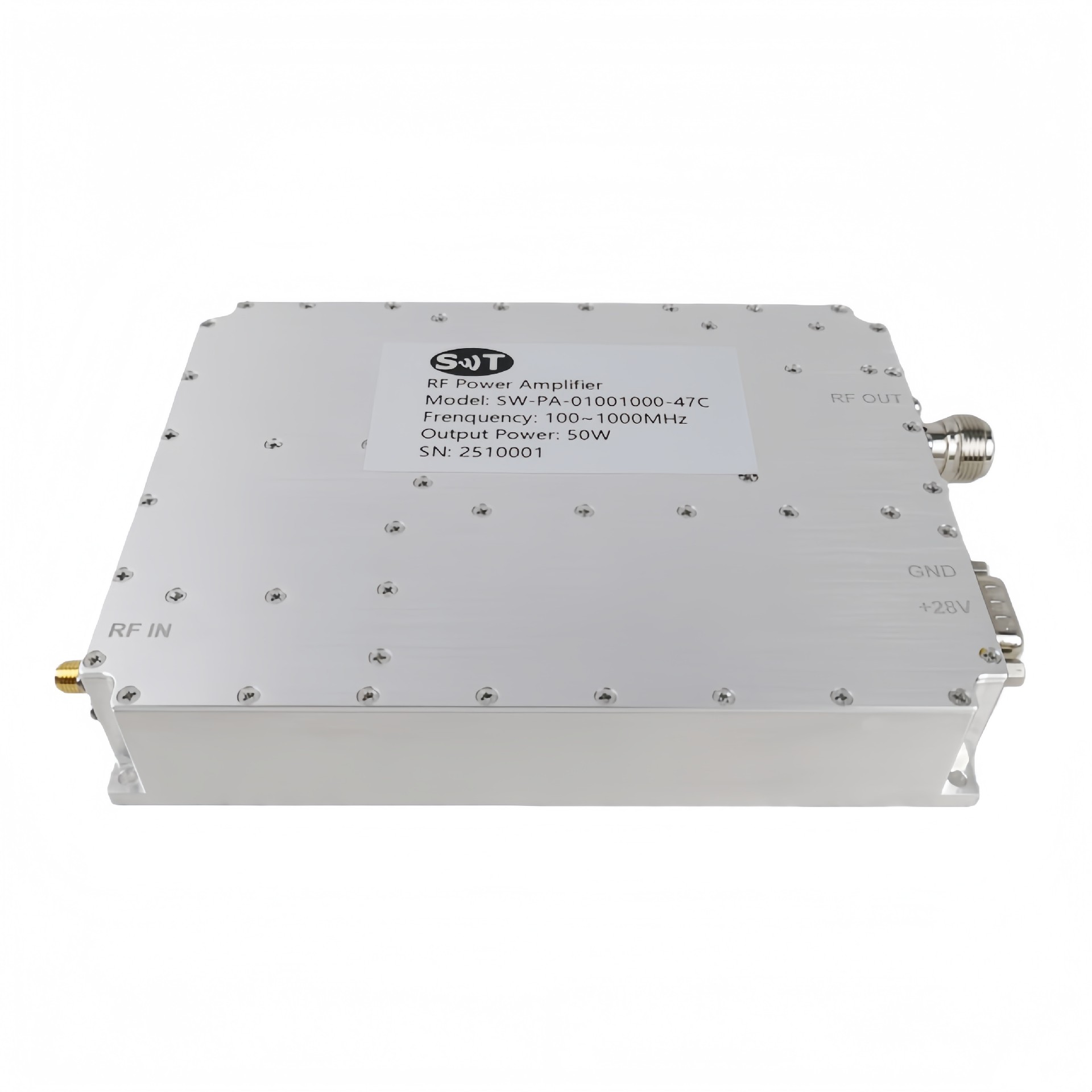 0.1-1GHz 50W High-Gain Power Amplifier for RF Communication & Industrial Use