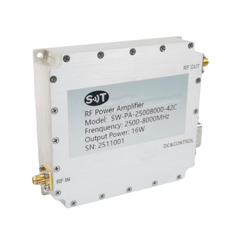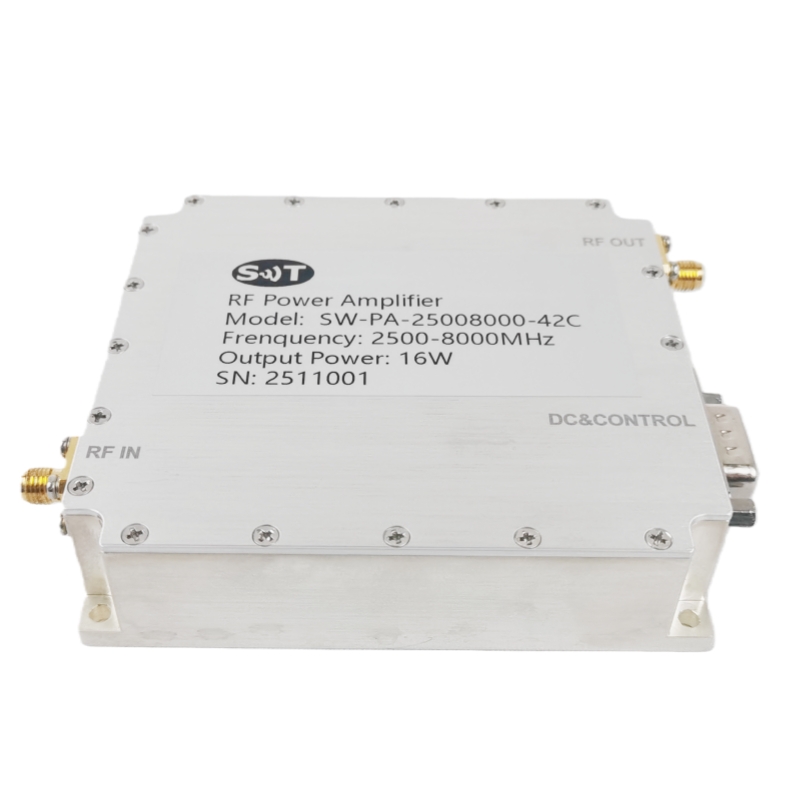 2.5 to 8 GHz RF Amplifier 15W Output High Efficiency High Linearity Compact Design for Commercial Applications