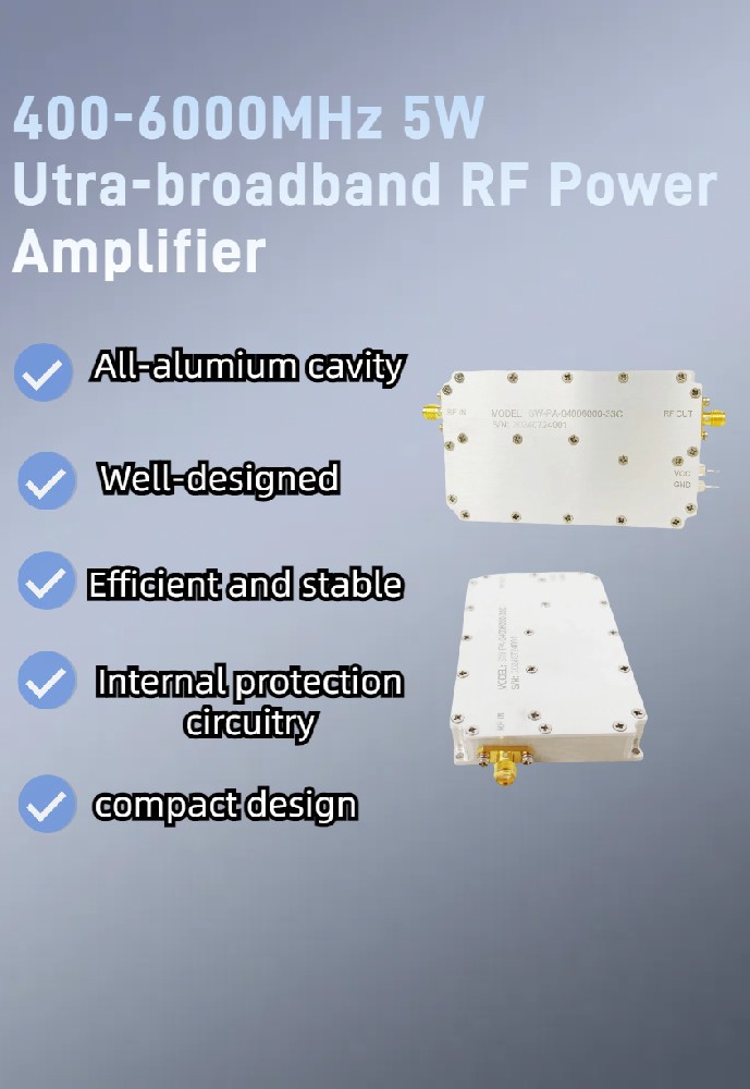 The 400-6000MHz 2W RF power amplifier is a high-performance, medium-power device suitable for various RF and wireless communication applications. Key features include:
