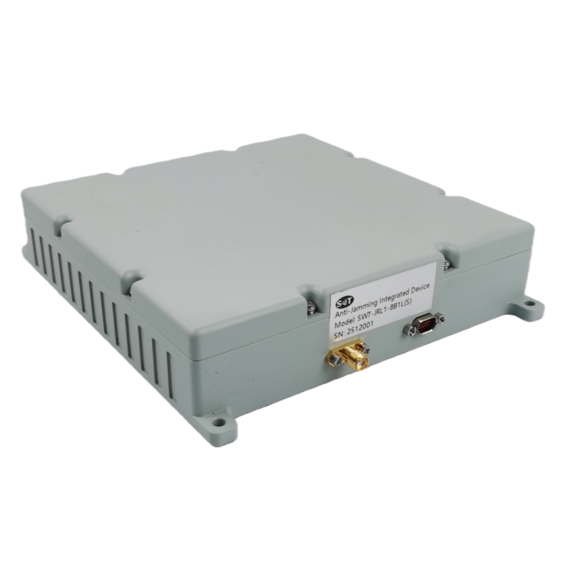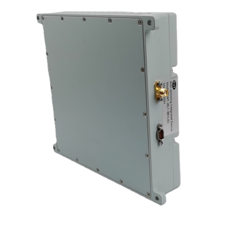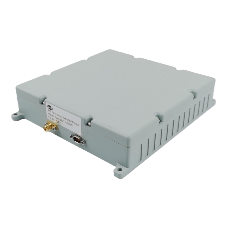 The Anti-Jamming Integrated Device supports the reception, down-conversion, and amplification of 8 channels of BDS_B1, GPS_L1, and GAL_E1 frequency signals. It combines and forwards the interference-filtered RF signals to the receiver. With a compact size, low power consumption, and simple integration, it features advanced adaptive anti-jamming capabilities. This product is widely suitable for mobile vehicles, aircraft, unmanned platforms, and other applications, significantly enhancing anti-jamming performance.