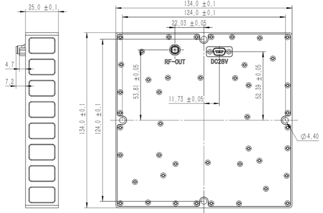 | Gain of channel(dB) | 40±1 | Size (mm) | 134 m * 134mm * 20mm (Height without connectors) |