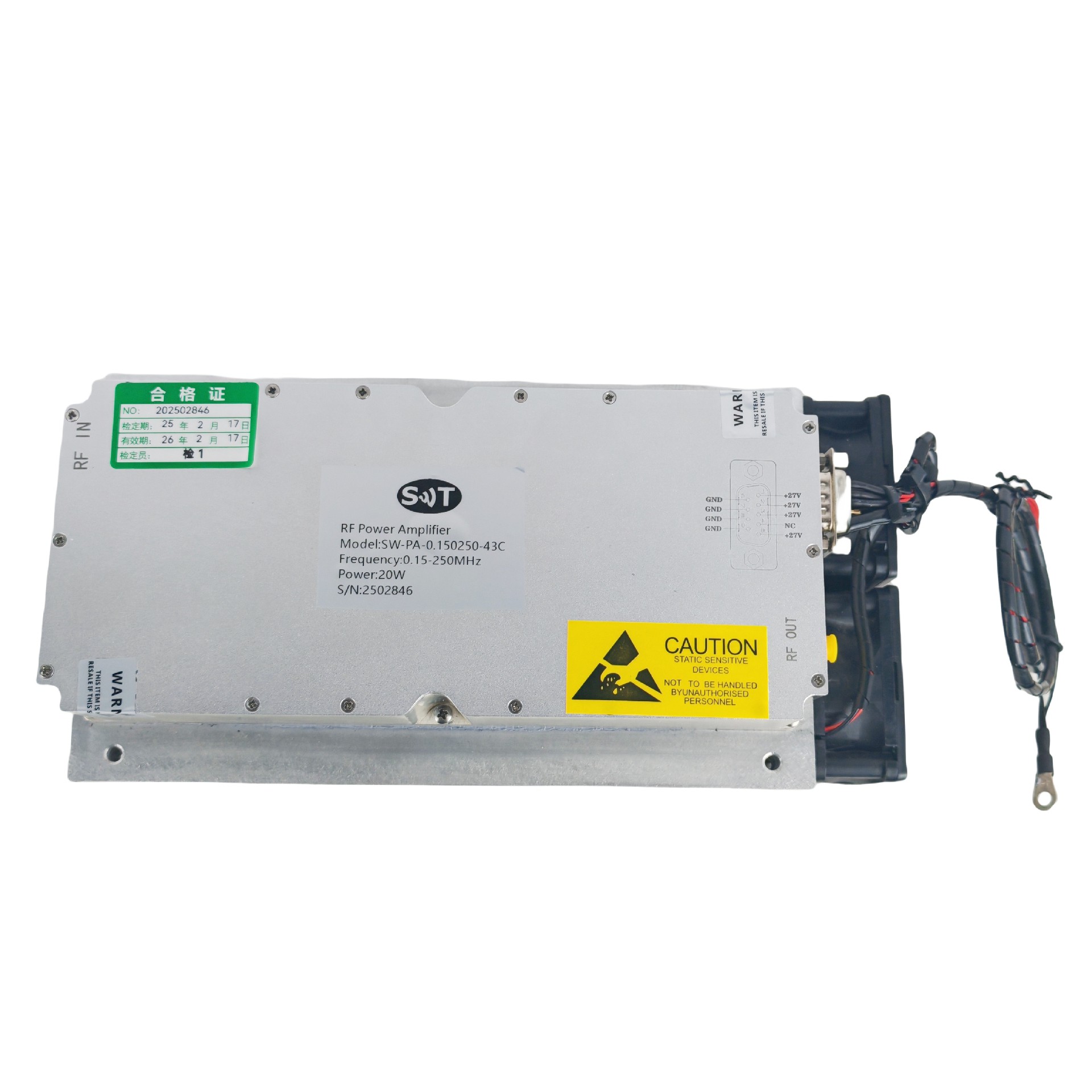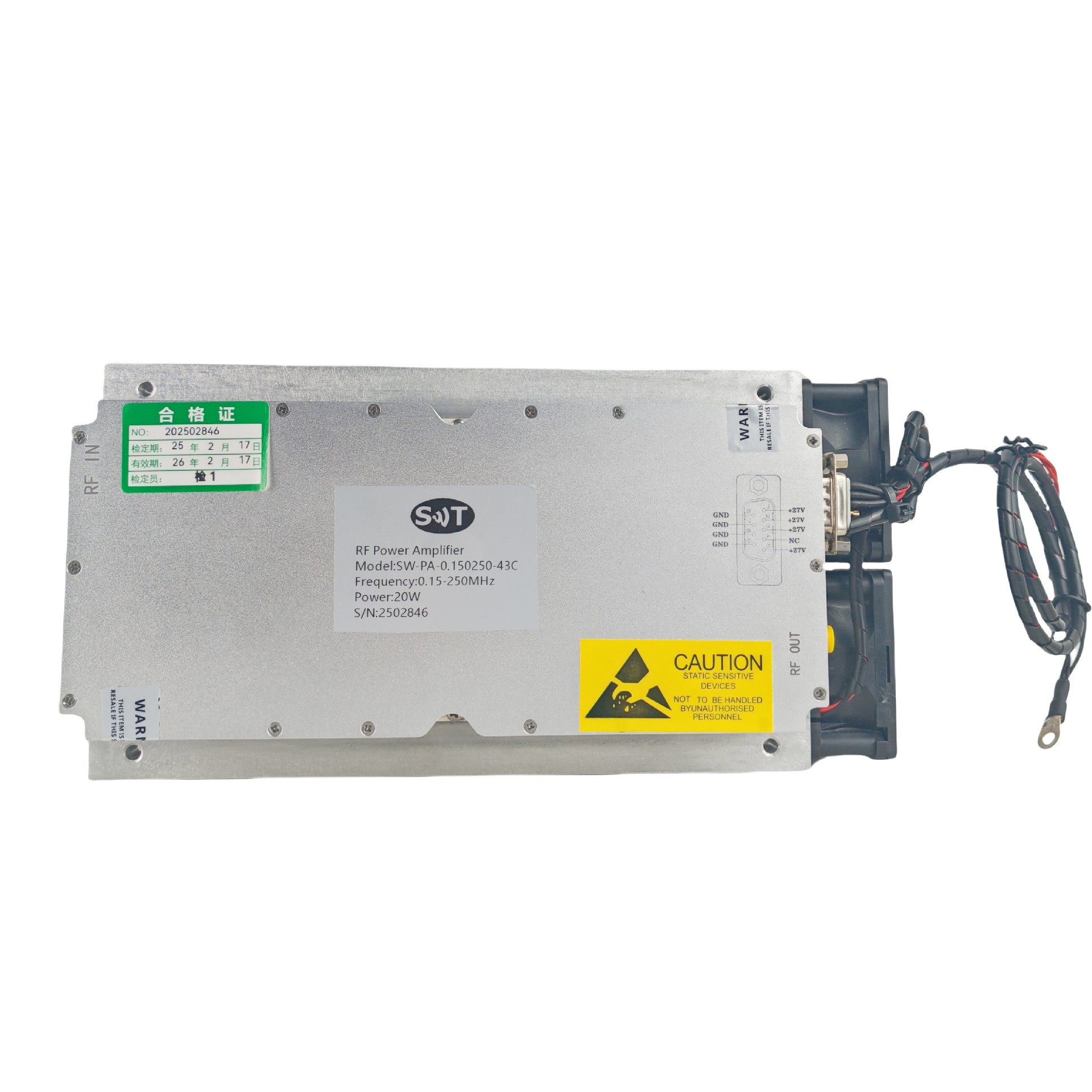 This customized 15k-250MHz 20W RF power amplifier is designed for HF/VHF band applications, including radio communication, radar, broadcasting, and RF testing. It offers high efficiency, low distortion, and stable signal amplification for a wide range of RF applications.