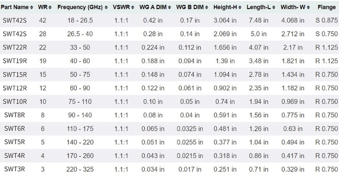 Frequency Range: Suitable for microwave and millimeter-wave frequencies ranging from 18 GHz to 325 GHz, covering a wide range of applications.