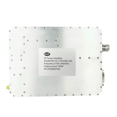 Радиочастотный усилитель мощности мощностью 5700 - 5900 МГц мощностью 100 Вт стал неотъемлемой и важной частью современных систем связи благодаря своей высокой мощности, высокому коэффициенту усиления и низкой шумовой производительности. Как в беспроводной, радиолокационной, так и в спутниковой связи, этот продукт обеспечивает отличную производительность и стабильность для широкого спектра применений.
