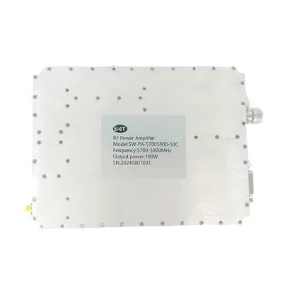 Радиочастотный усилитель мощности мощностью 5700 - 5900 МГц мощностью 100 Вт стал неотъемлемой и важной частью современных систем связи благодаря своей высокой мощности, высокому коэффициенту усиления и низкой шумовой производительности. Как в беспроводной, радиолокационной, так и в спутниковой связи, этот продукт обеспечивает отличную производительность и стабильность для широкого спектра применений.