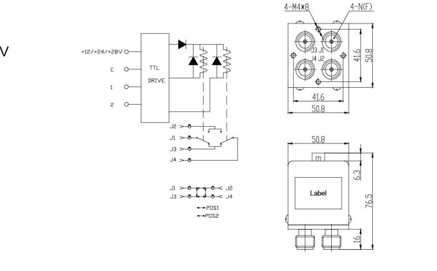 разъемы DC - 12 ГГц DC12V, 24V, 28V N, без зажимов; АМП; Коаксиальный переключатель с TTL DPDT