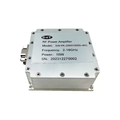 Em Resumo, O Amplificador De Potência RF De Banda Ku De 2-18GHz é Um Dispositivo Versátil Adequado Para Uma Ampla Gama De Aplicações RF De Banda Ku, Caracterizado Por Alta Potência De Saída, Eficiência E Confiabilidade. É Um Componente Essencial Em Muitos Sistemas De Comunicação, Radar E Medição.