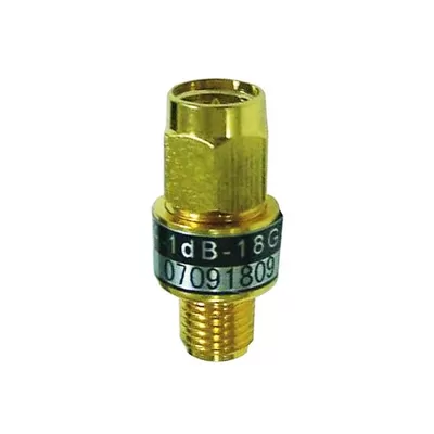 SMAS coaxial fixed attenuator average power 2W, frequency range DC-26.5GHz. It has the following characteristics: wide working frequency band, low standing wave coefficient, flat attenuation value, strong anti-pulse and anti-burn ability.