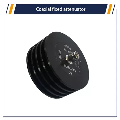 SMA25 series coaxial fixed attenuator average power 25W, frequency range DC-26.5GHz. It has the following characteristics: wide working frequency band, low standing wave coefficient, flat attenuation value, strong anti-pulse and anti-burn ability.