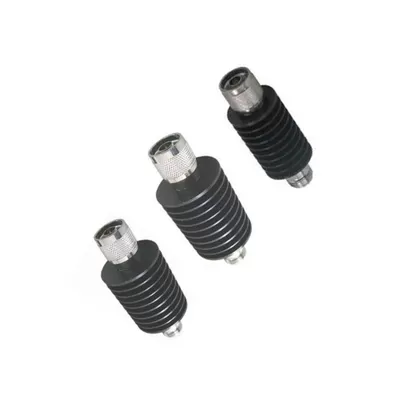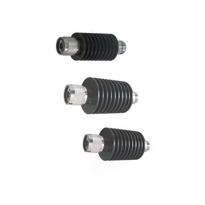 DTS series coaxial fixed attenuator average power 10W-10KW, frequency range DC-26.5GHz. It has the following characteristics: wide working frequency band, low standing wave coefficient, flat attenuation value, strong anti-pulse and anti-burn ability.