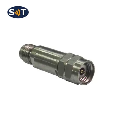 2.4TS2-H-50 coaxial fixed attenuator average power 2W, frequency range DC-50GHz. It has the following characteristics: wide working frequency band, low standing wave coefficient, flat attenuation value, strong anti-pulse and anti-burn ability.