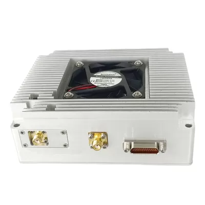 The SW-DL-14201530-40C is a 10W data link power amplifier designed for military and commercial applications. It supports a frequency range of 1420 to 1530 MHz and offers modulation methods such as CoFDM (QPSK, QAM16, QAM64 TDD). This amplifier provides a maximum wireless transmission rate of 25 Mbps and supports point-to-point, point-to-multipoint, and star network configurations. It measures 128 x 100 x 46 mm, uses forced air cooling, and includes over-temperature protection.